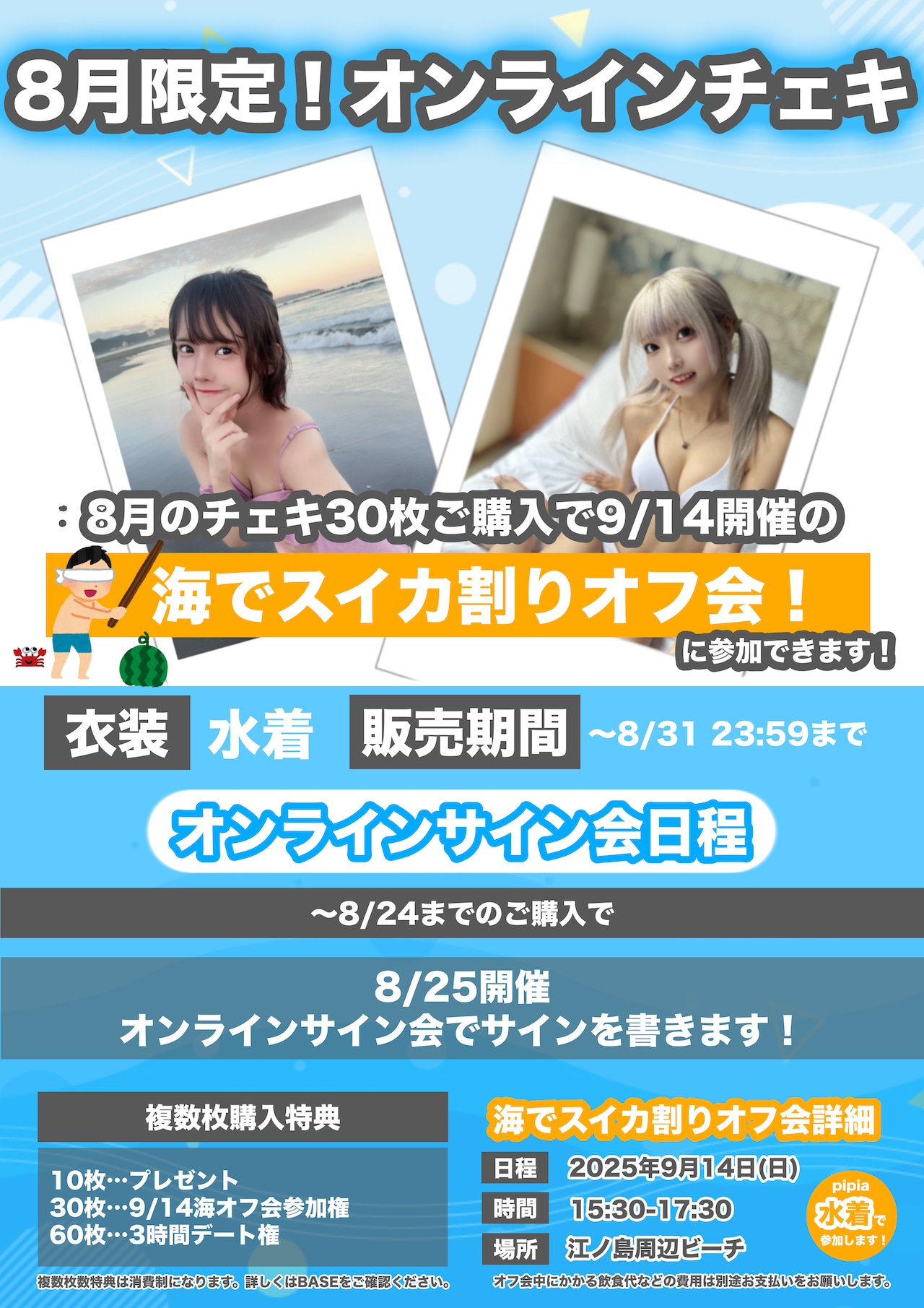今月は30枚ご購入で9/14開催予定の「海でスイカ割りオフ会」に参加できます!